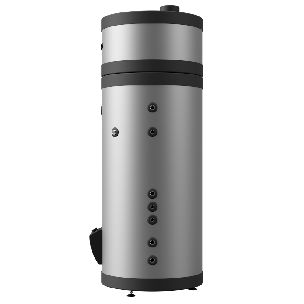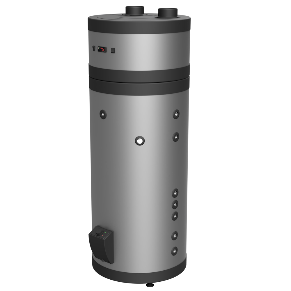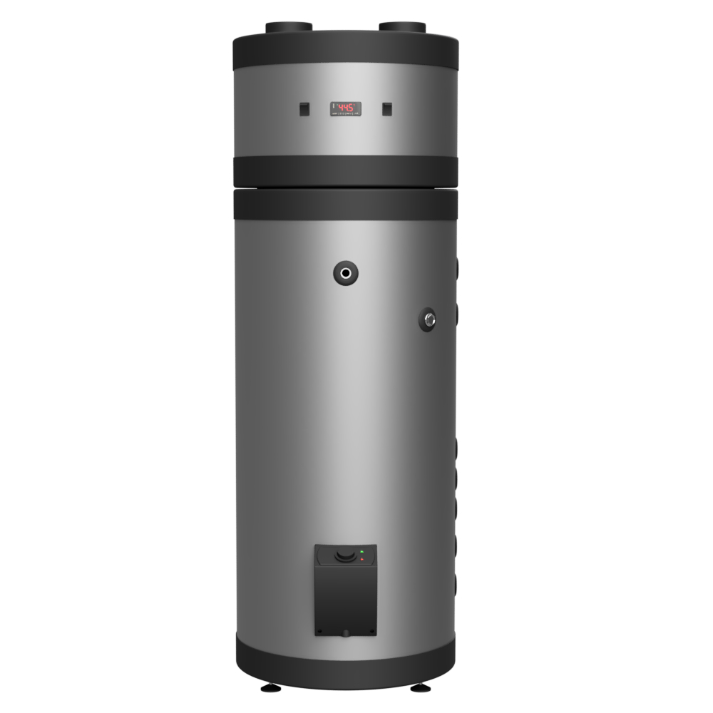 - Bomba de calor combinada com um tanque de água pressurizada em aço INOX AISI 444 (ou aço INOX AISI 316);