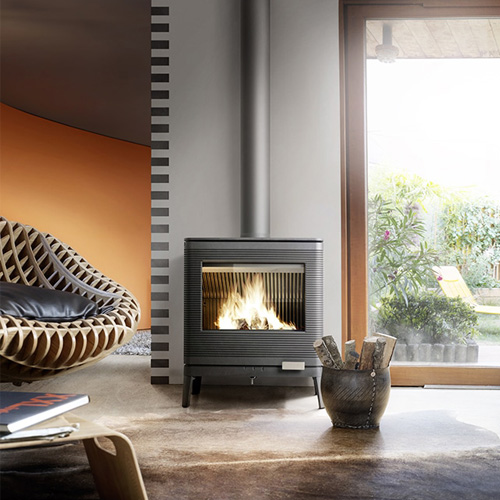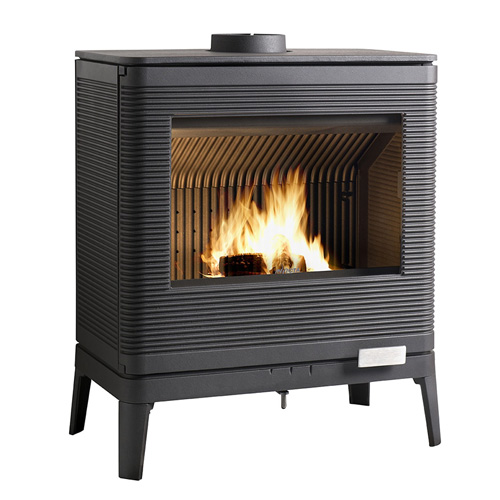 O sistema de vidro próprio permite diminuir a sujidade no vidro. Uma entrada de ar na parte superior do vidro cria um véu de proteção. O ar pré-aquecido é propulsionado ao longo do vidro. Provoca a ativação da combustão dos gases e as matérias voláteis protegem desta forma o vidro face ao fumo e ao depósito de fuligem.