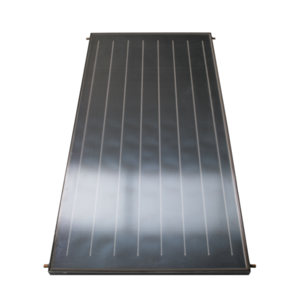 É composto por caixas planas interiormente revestidas com um isolamento, exceptuando uma das faces que é de vidro transparente. Cada caixa contém uma placa negra plana que absorve a energia solar, e é através dela que circula a água, encarregada de transferir o calor recebido da radiação solar.