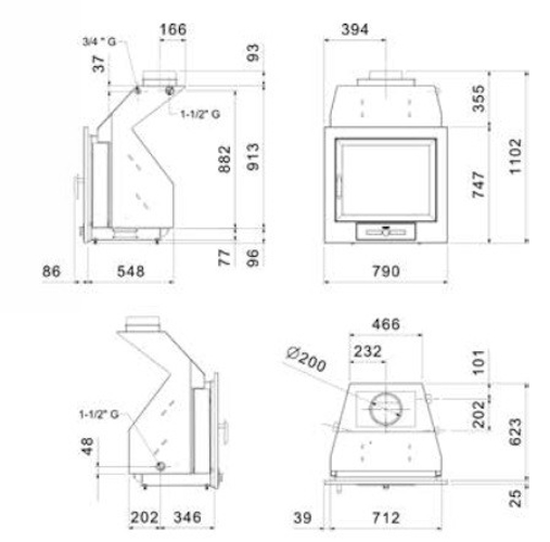 Diâmetro da chaminé: 200mm
