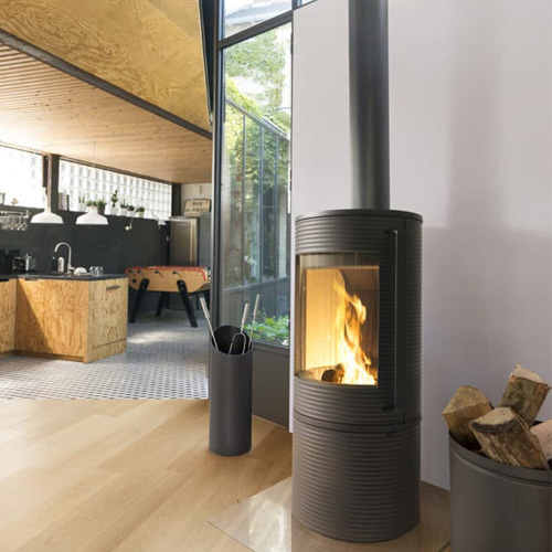 O sistema de vidro próprio permite diminuir a sujidade no vidro. Uma entrada de ar na parte superior do vidro cria um véu de proteção. O ar pré-aquecido é propulsionado ao longo do vidro. Provoca a ativação da combustão dos gases e as matérias voláteis protegem desta forma o vidro face ao fumo e ao depósito de fuligem.