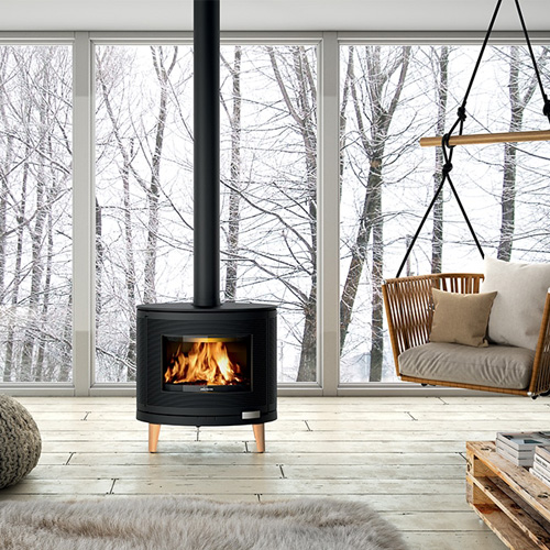 O sistema de vidro próprio permite diminuir a sujidade no vidro. Uma entrada de ar na parte superior do vidro cria um véu de proteção. O ar pré-aquecido é propulsionado ao longo do vidro. Provoca a ativação da combustão dos gases e as matérias voláteis protegem desta forma o vidro face ao fumo e ao depósito de fuligem.