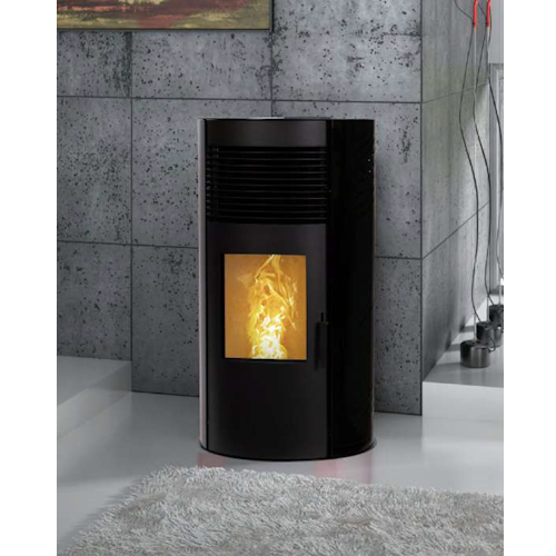 A salamandra a pellets Curvi é muito prática e de fácil utilização. Destaca-se por ter um baixo consumo e uma potência nominal de 11kW. É constituído em chapa de aço ao carbono, com uma espessura na câmara de combustão de 3mm. Incluí controlo eletrónico com painel digital e teclado intuitivo, ignição automática, relógio para funcionamento automático, supervisão do equipamento elétrico com mensagens de alarme por código de erro, controlo automático da combustão em função da temperatura ambiente e temperatura desejada. Comando remoto com funções principais (opcional).